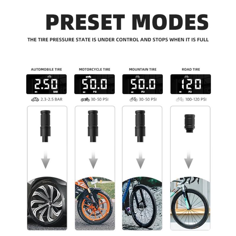 ROCKBROS A10 Auto Motorfiets Fiets Band Luchtpomp Draagbare Draadloze Elektrische Voertuig Band Inflator met LED-lampje