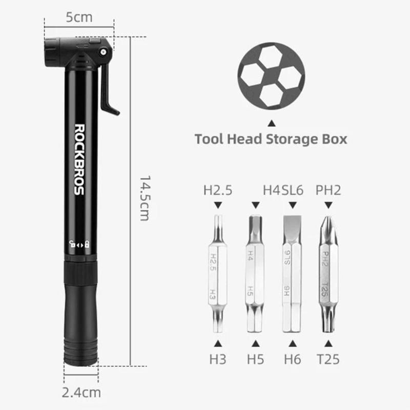 ROCKBROS TG-1616 Draagbare 120PSI fiets E-bike band luchtpomp fiets basketbal metalen inflator met ratel gereedschap