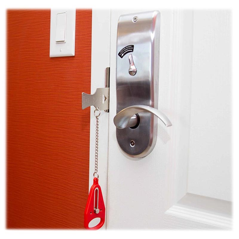 Beveilig je huis of zorg voor je privacy als je zich in een hotel, motel, appartement of andere plaatsen bevindt. Dit product is zelfs uitstekend voor de kinderen om ongewenste openingen te stoppen. Eenvoudig te installeren of te verwijderen. De deurbeveiliging is gemaakt van roestvrij staal, zodat de deur niet van buitenaf kan worden geopend, zelfs niet met een sleutel. Een robuuste ABS-kunststof kap is er om schade aan de deur onder druk te voorkomen.