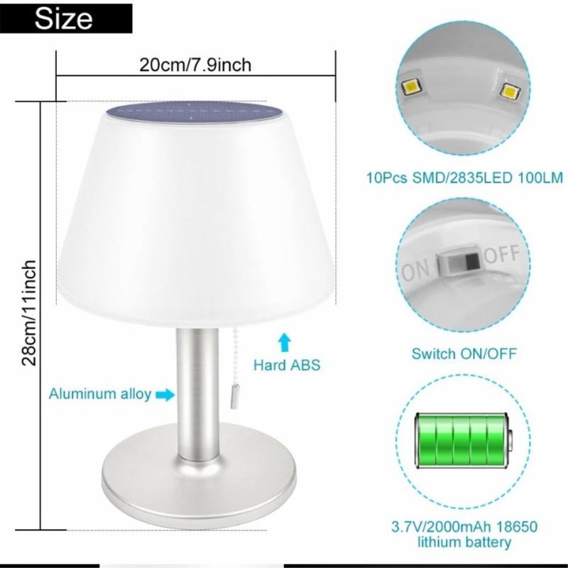 Geniet binnen of buiten van gezellige, niet-verblindende verlichting met deze tafellamp op zonne-energie. Tien oogvriendelijke LED's zitten in een geborsteld roestvrijstalen frame en matte diffuser, terwijl een geïntegreerd polykristallijn paneel de lithiumbatterij van 1200 mAh overdag oplaadt. Bij het vallen van de avond schakelt de lamp automatisch aan en biedt twee helderheidsstanden (zacht of sterk) voor maximaal 8 uur zachte sfeer of 4 uur geconcentreerd lezen - geen kabels, geen elektriciteitsrekeningen, gewoon draagbaar licht waar je het ook nodig hebt.