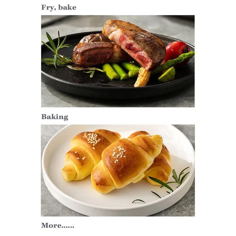 - Gebruikt weinig tot geen olie, wat gezonder koken bevordert met behoud van een knapperige textuur