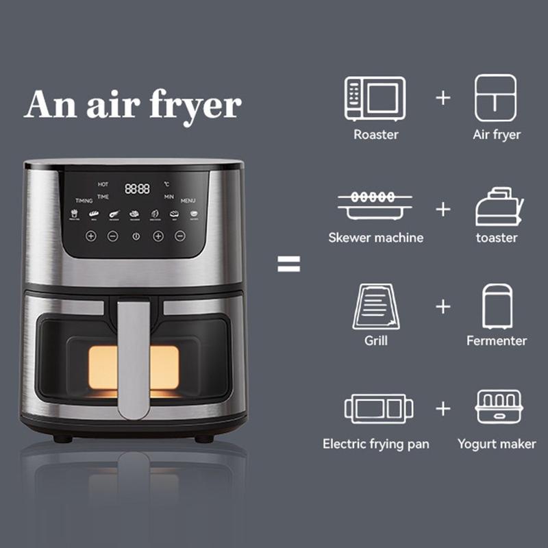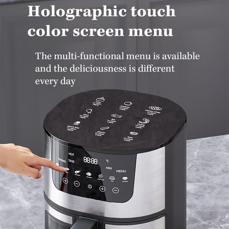 De 7L 1500W multifunctionele roestvrijstalen airfryer brengt krachtig koken voor het hele gezin naar je keuken. Met een ruime capaciteit van 7 liter kunt u royale porties in één keer bereiden - ideaal voor gezinnen, bijeenkomsten en alledaagse maaltijden. De duurzame combinatie van roestvrij staal en kunststof aan de buitenkant, gecombineerd met een pan met aluminium antiaanbaklaag aan de binnenkant, zorgt voor langdurige prestaties en eenvoudig schoonmaken.
