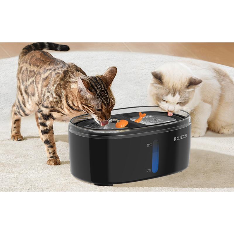 Rojeco introduceert een moderne en intelligente oplossing in de vorm van de RYSJ-09 fontein/drinkbak, ontworpen om constante toegang tot vers en schoon water te bieden aan je hond of kat. Met een capaciteit van 2,5 liter kan dit apparaat voorzien in de wekelijkse behoefte van twee katten, zodat je je geen zorgen hoeft te maken over het regelmatig bijvullen van water. Dankzij het ontwerp met twee bakken kunnen twee huisdieren er tegelijk gebruik van maken, waardoor het ideaal is voor huishoudens met meer dan één huisdier.