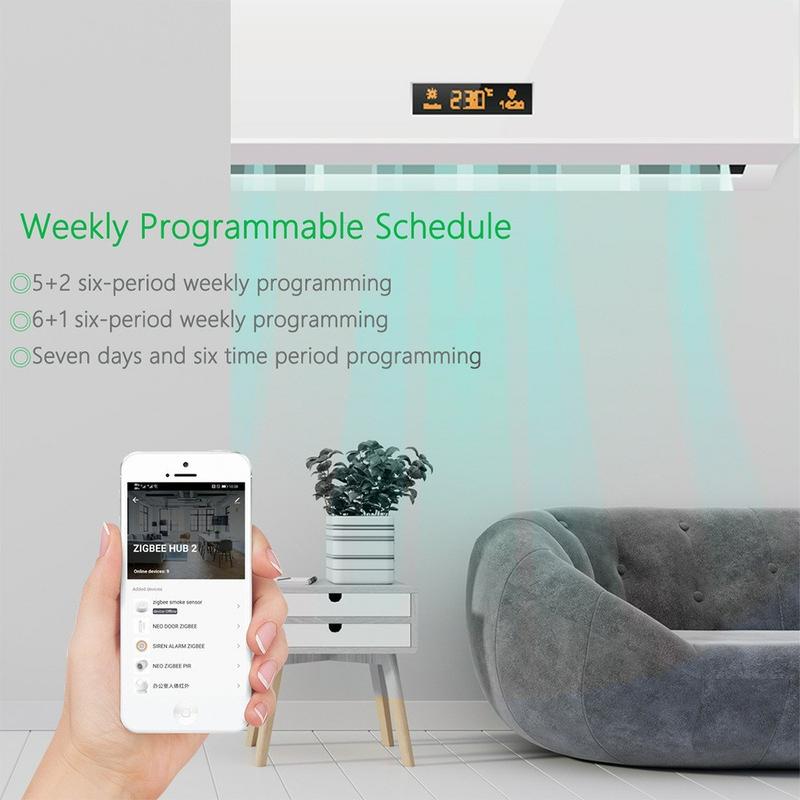 - Weekprogrammer - Zes tijdsblokken per dag, zeven dagen per week, direct in de Tuya app - verwarm alleen wanneer je het nodig hebt.