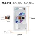 De meeste thumb-cams laten het scherm weg om klein te blijven; de S150 voegt een helder kleurenscherm toe maar hangt nog steeds comfortabel als een halsketting. De verwisselbare micro-SD-opslag, resolutie van 1080 p en loop-modus maken hem veelzijdiger dan speelgoedcamera's en veel lichter dan actiecamera's.
