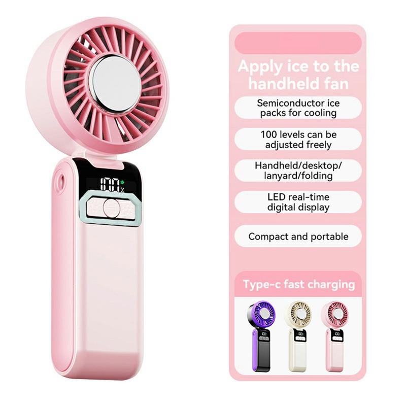 S2 draagbare handventilator - oplaadbare zakventilator met 100 snelheden, led-display en opvouwbaar 3-in-1-ontwerp