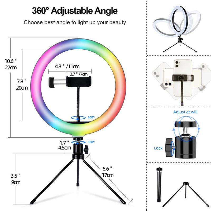 S26-RGB 10" RGB LED Ring Light Selfie Fotografie Invullicht met Telefoonhouder en Statief