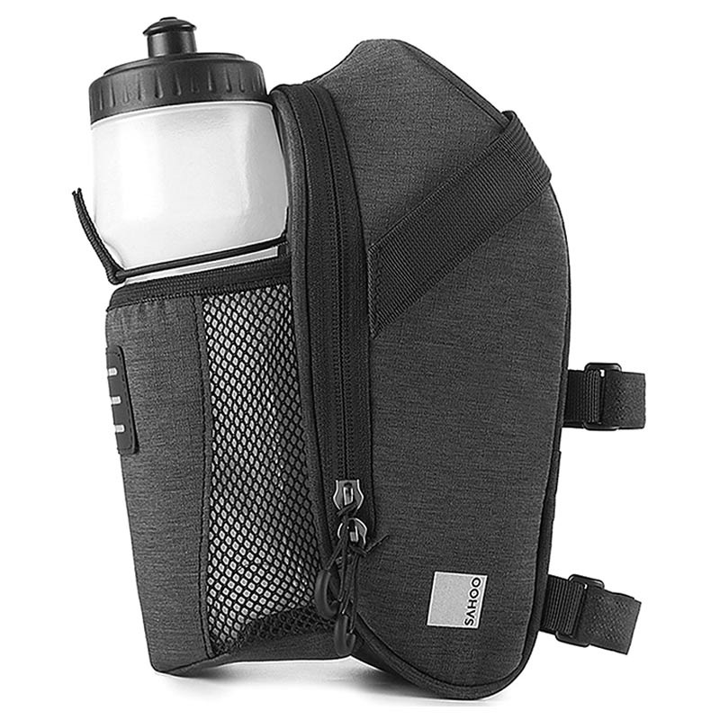Deze fietszadelkoffer van topkwaliteit is groot genoeg voor al je benodigdheden tijdens het fietsen op je favoriete route. Het is gemaakt van waterafstotend polyester met dubbele ritssluiting, zodat je spullen beschermd zijn tegen regen, vuil, modder en andere verontreinigingen. Bovendien geeft een flessenvak u snel toegang tot uw waterfles wanneer u dorst heeft.