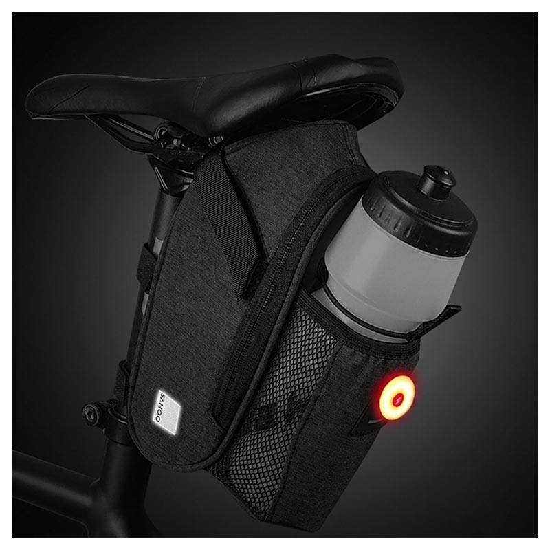 - Een waterafstotende fietszadelkoffer met flessenvak
