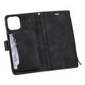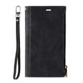iPhone 14 Pro Max Saii Zipper Portemonnee Hoesje met Riem - Zwart
