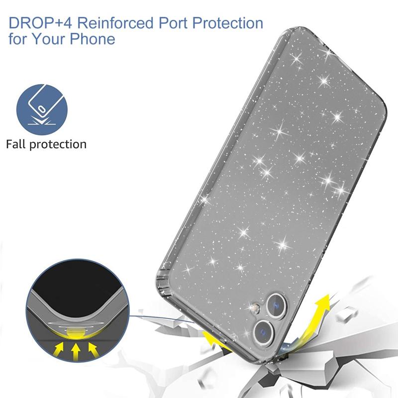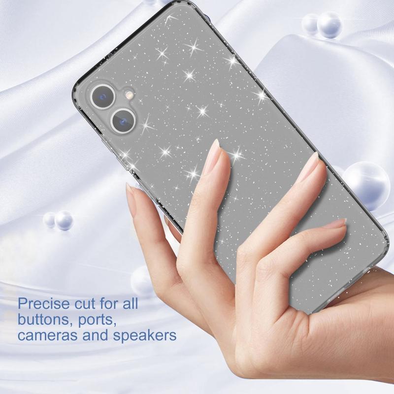 - Transparant hoesje met glitters voor een stijlvolle uitstraling van je toestel