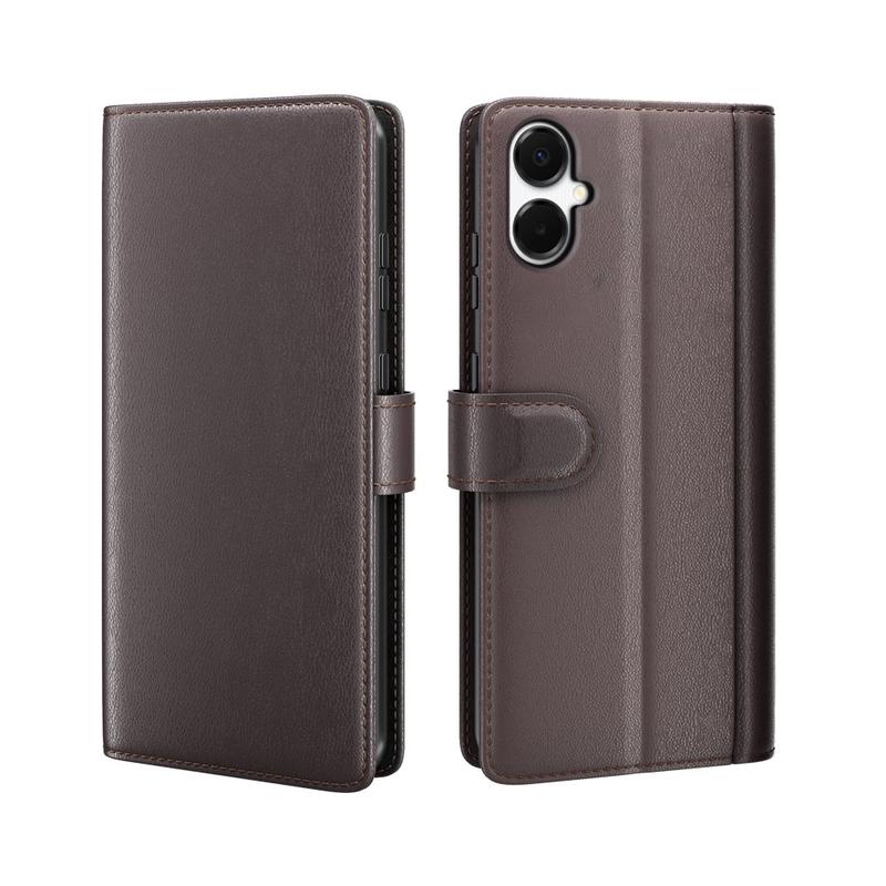 Een hoogwaardige, verfijnde leren case voor uw Samsung Galaxy A06 5G. Geef je telefoon een premium uitstraling en bescherm hem tegen krassen en veelvoorkomende schade. Deze multifunctionele portemonnee van zacht leer heeft binnenvakken voor pasjes en een groter vak voor contant geld. Bovendien heeft de Samsung Galaxy A06 5G echt lederen case een handsfree kijkstandaard en een uitsparing aan de voorkant om te praten met de case gesloten.