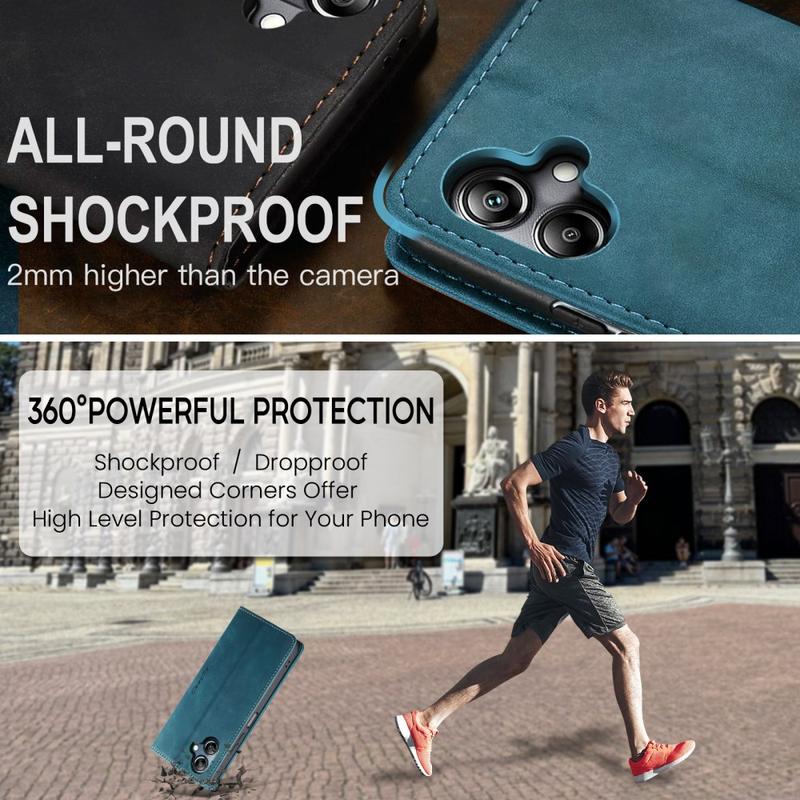 Een combinatie van TPU en polyurethaan biedt volledige bescherming voor Samsung Galaxy A06 en beschermt deze tegen stof, vuil, stoten, krassen en dagelijkse slijtage. Magnetische aantrekkingskracht houdt de behuizing gesloten en het slimme ontwerp maakt handsfree gebruik mogelijk tijdens het bekijken van media-inhoud.