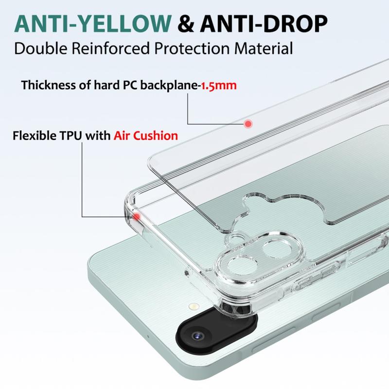 Dit accessoire maakt gebruik van een combinatie van acryl en TPU om je smartphone in ongerepte staat te houden. Ondertussen voorkomen de versterkte, schokabsorberende hoeken valschade, terwijl het transparante ontwerp het prachtige ontwerp van je Samsung Galaxy A07 4G laat zien.