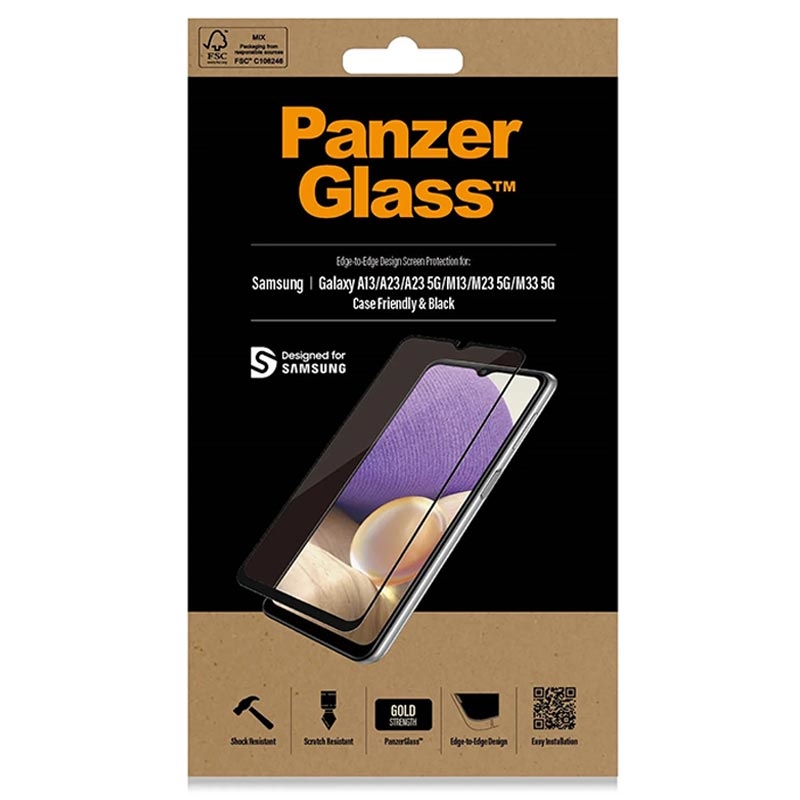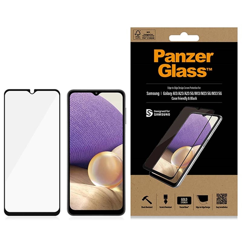 - PanzerGlass Case Friendly screenprotector van gehard glas voor de Samsung Galaxy A13, Galaxy A23, Galaxy A23 5G, Galaxy M13, Galaxy M23, Galaxy M33