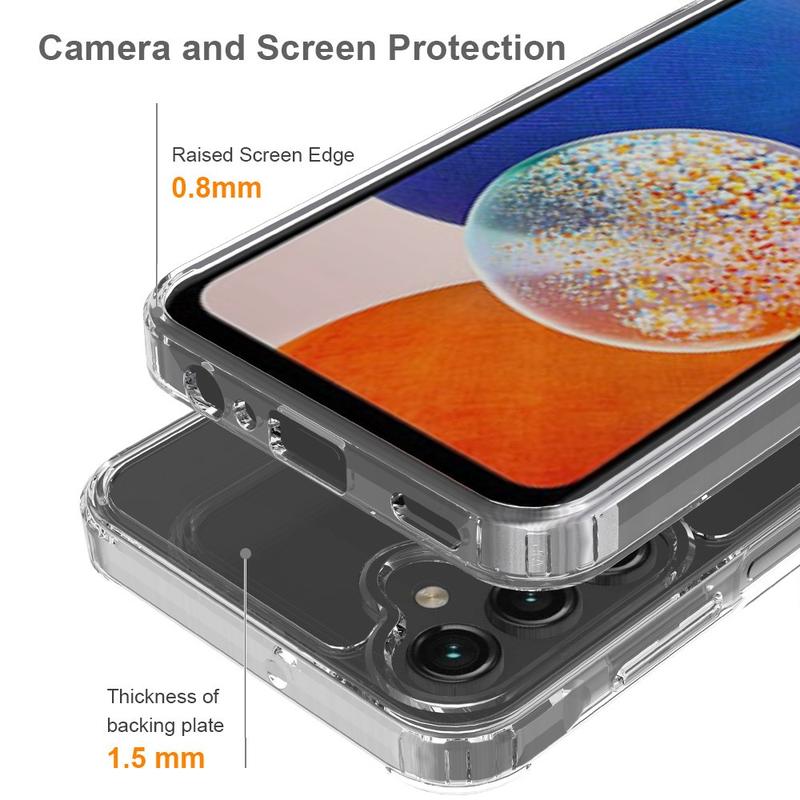 Dit accessoire maakt gebruik van een combinatie van acryl en TPU om je smartphone in ongerepte staat te houden. Ondertussen voorkomen de versterkte, schokabsorberende hoeken valschade, terwijl het transparante ontwerp het prachtige ontwerp van je Samsung Galaxy A15 laat zien.