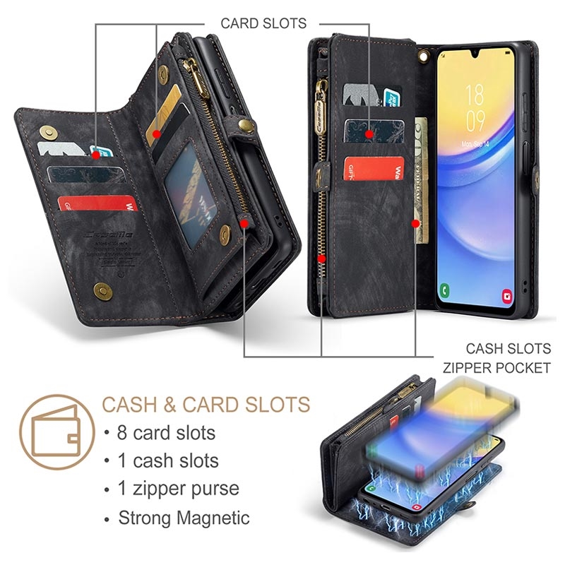 Samsung Galaxy A16 5G Caseme 008 2-in-1 Multifunctionele portemonneehoes - Zwart