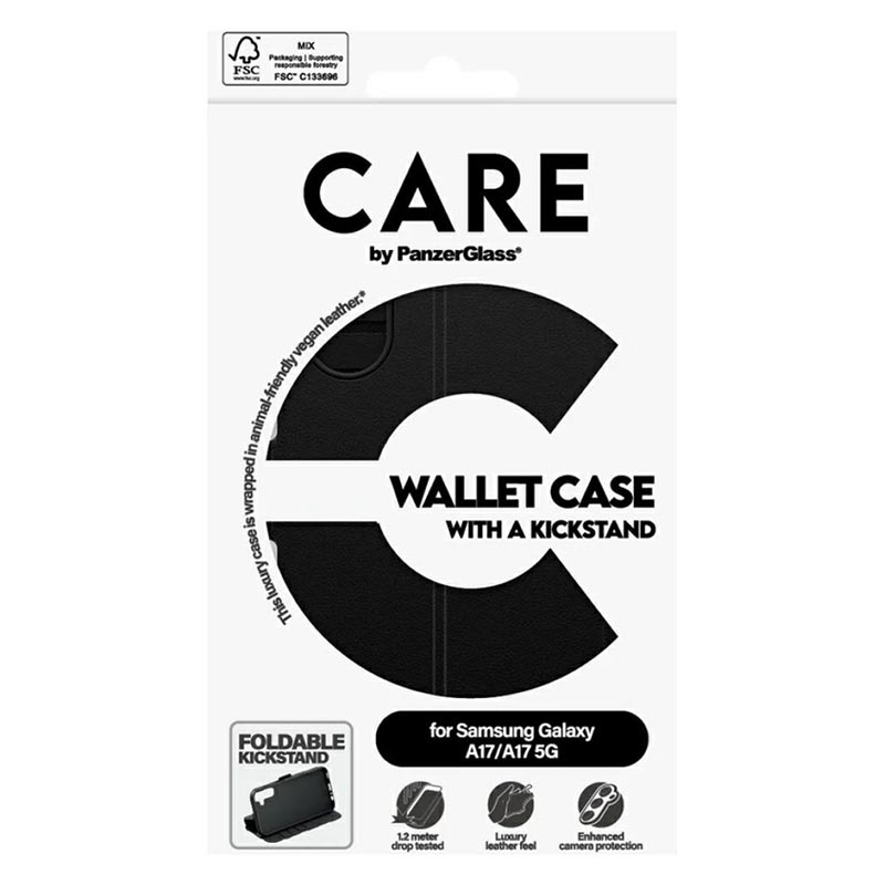 Investeer in de CARE by PanzerGlass Feature Wallet Case met Kickstand om je Samsung Galaxy A17, Galaxy M17 te voorzien van superieure bescherming en stijl, zodat je toestel net zo onberispelijk blijft als je persoonlijke smaak.