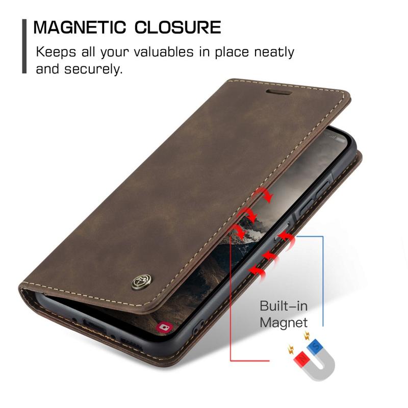 - Ingebouwde magneten houden de Caseme 013-serie portemonnee-etui gesloten
