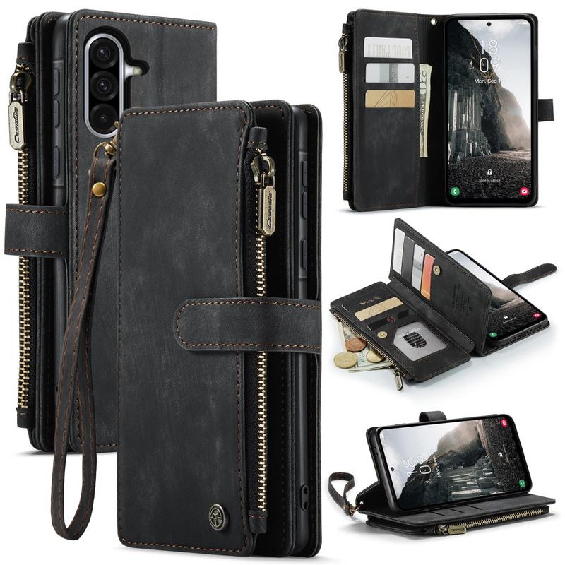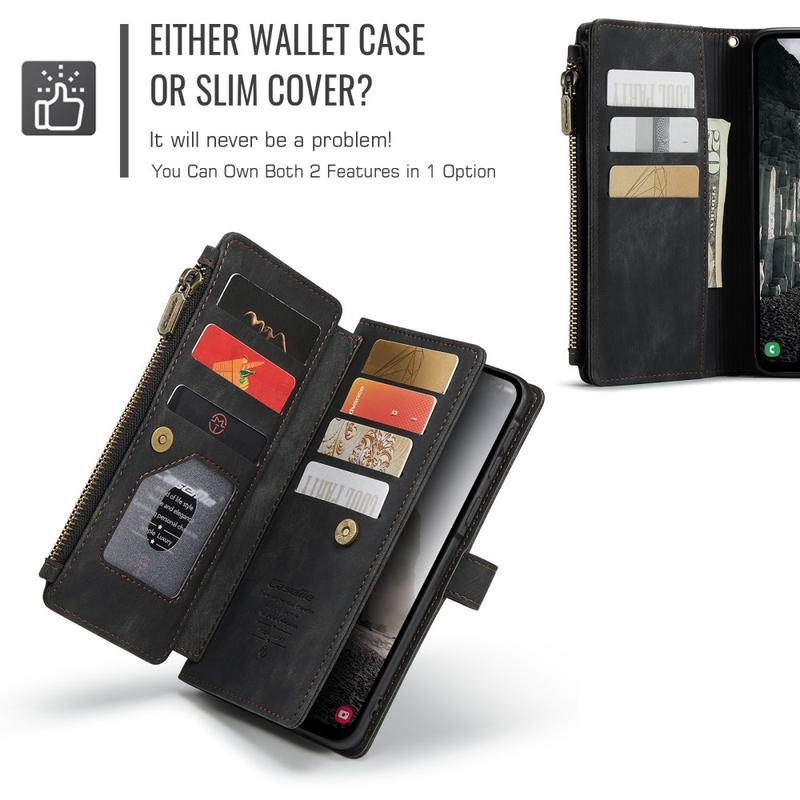 Het Caseme C30 multifunctionele portemonnee hoesje voor Samsung Galaxy A17 biedt uitzonderlijke all-round bescherming en een exclusief, verfijnd ontwerp. Dit elegante hoesje is gemaakt van premium polyurethaan, versterkt met een schokbestendige TPU binnenhoes die je Samsung Galaxy A17 perfect omsluit. Ondertussen is de Caseme C30 portemonnee hoes uitgebreid met tal van kaartsleuven, een groot geldvak binnen, en een ritsvak aan de buitenkant, allemaal beschermd door een veilige magnetische sluiting.