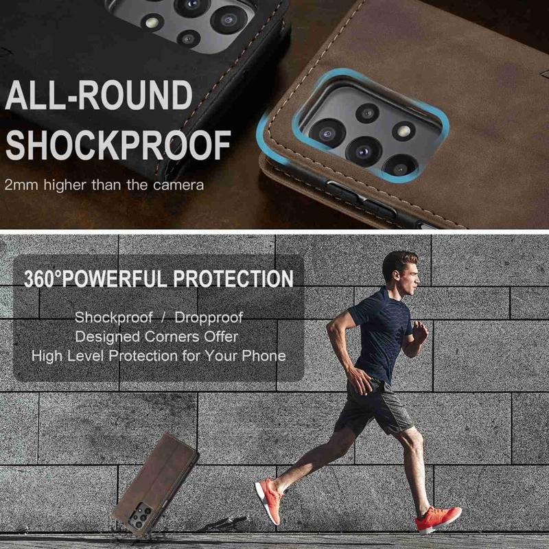 Een combinatie van TPU en polyurethaan biedt volledige bescherming voor Samsung Galaxy A23 5G en beschermt deze tegen stof, vuil, stoten, krassen en dagelijkse slijtage. Magnetische aantrekkingskracht houdt de behuizing gesloten en het slimme ontwerp maakt handsfree gebruik mogelijk tijdens het bekijken van media-inhoud.
