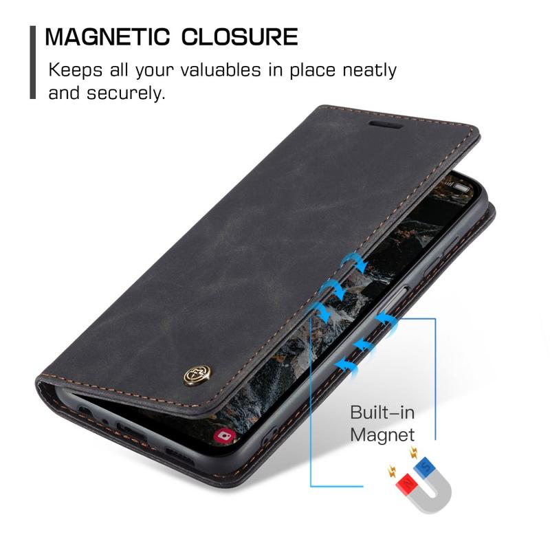 - Ingebouwde magneten houden de Caseme 013-serie portemonnee-etui gesloten