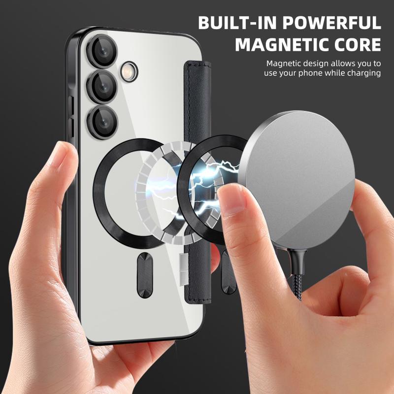 Dit premium Samsung Galaxy A35 hoesje is gemaakt van TPU, acryl en polyurethaan van hoge kwaliteit, met behulp van een fijn proces om een delicate en verfijnde afwerking te garanderen. Het is uitgerust met een handige kaartsleuf om onderweg eenvoudig te kunnen pinnen en uitgeven, en is voorzien van een sterke magneet voor automatisch sluiten, waardoor het veilig en handig is om items in het hoesje te bewaren. Dit Samsung Galaxy A35 hoesje biedt effectieve bescherming tegen dagelijkse slijtage, krassen, vlekken en schrammen, terwijl de geavanceerde RFID-blokkeringstechnologie in de kaartsleuf ervoor zorgt dat je persoonlijke gegevens beschermd zijn tegen diefstal. Bovendien is de ingebouwde magnetische ring compatibel met MagSafe draadloos opladen, wat betekent dat je je Samsung Galaxy A35 kunt opladen zonder het hoesje af te doen.