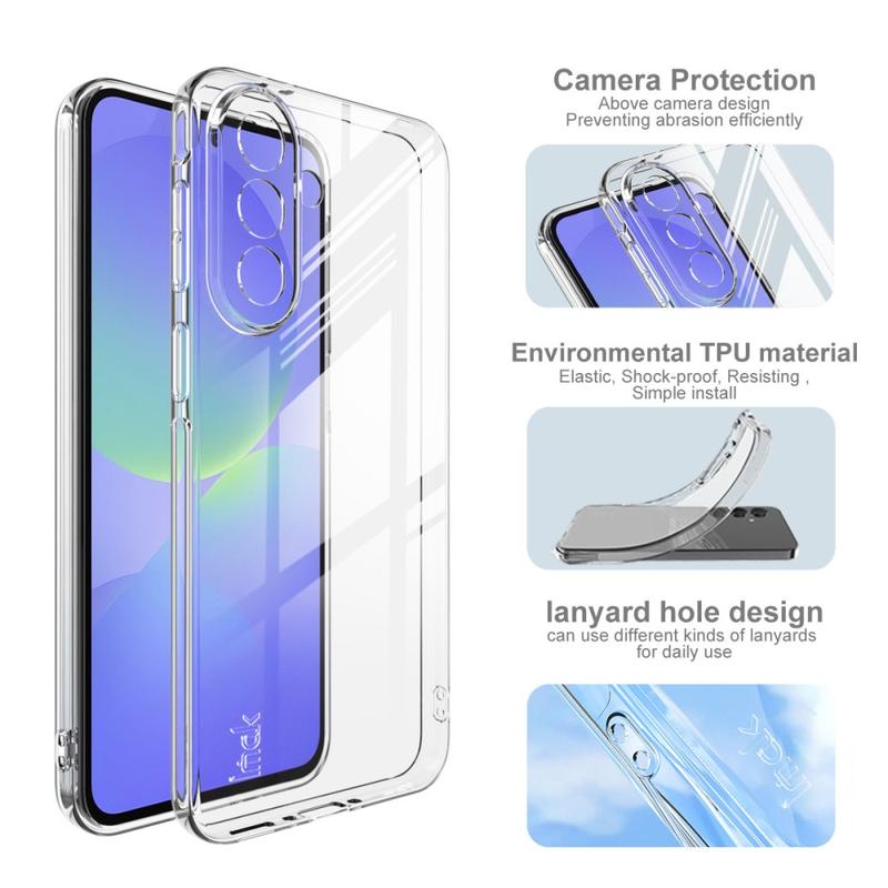 Bescherm je Samsung Galaxy A37 zonder het ontwerp te verbergen met de Imak UX-5 Transparante TPU Case. Deze case is gemaakt van TPU van hoge kwaliteit en combineert slank, lichtgewicht comfort met schokbestendige bescherming, zodat je telefoon beschermd is tegen alledaagse stoten en vallen. Met een dikte van slechts 1 mm behoudt hij het slanke gevoel van je telefoon en zorgt hij voor een comfortabele grip. De zeer transparante afwerking laat de originele schoonheid van je Samsung Galaxy A37 doorschijnen, terwijl verhoogde lippen rond de camera en het scherm extra krasbestendigheid toevoegen. Precieze uitsparingen garanderen volledige toegang tot alle knoppen, poorten en functies zonder dat je het hoesje hoeft te verwijderen.