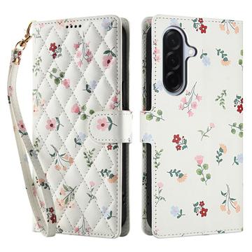 Ruitvormige Bloemen Portemonnee Hoesje voor Samsung Galaxy A37 - met riem en kaartsleuven