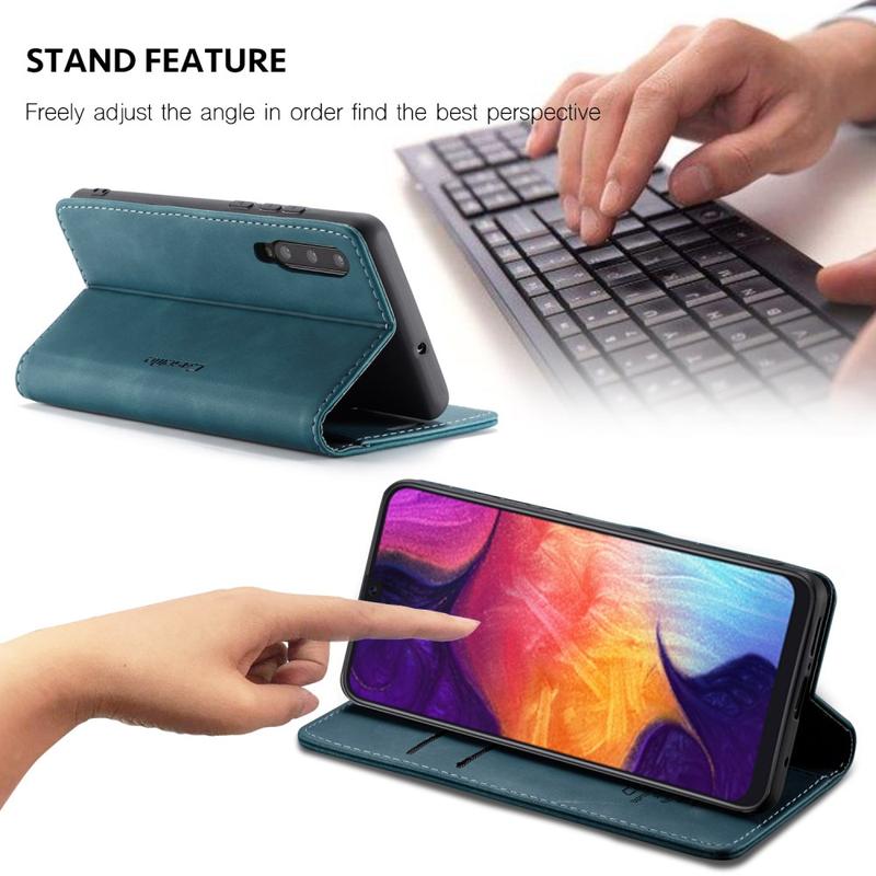 De Caseme 013 portemonnee-hoes bedekt en houdt je Samsung Galaxy A50 mooi en veilig binnenin dankzij de ontworpen ingebouwde magneten. De hoes stelt je ook in staat om je contant geld en creditcards van binnenuit te plaatsen met ontworpen twee sleuven en een geldvak.