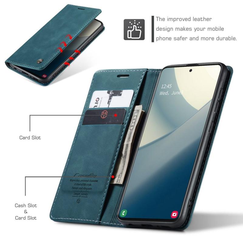 De Caseme 013 portemonnee-hoes bedekt en houdt je Samsung Galaxy A51 mooi en veilig binnenin dankzij de ontworpen ingebouwde magneten. De hoes stelt je ook in staat om je contant geld en creditcards van binnenuit te plaatsen met ontworpen twee sleuven en een geldvak.