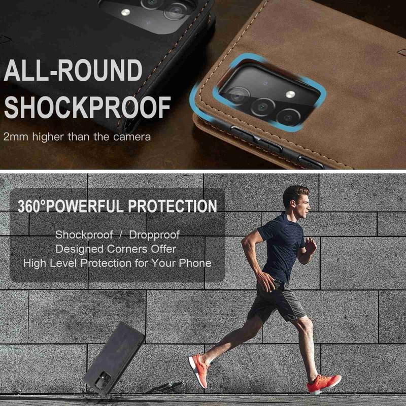 Een combinatie van TPU en polyurethaan biedt volledige bescherming voor Samsung Galaxy A52 5G, Galaxy A52s 5G en beschermt deze tegen stof, vuil, stoten, krassen en dagelijkse slijtage. Magnetische aantrekkingskracht houdt de behuizing gesloten en het slimme ontwerp maakt handsfree gebruik mogelijk tijdens het bekijken van media-inhoud.
