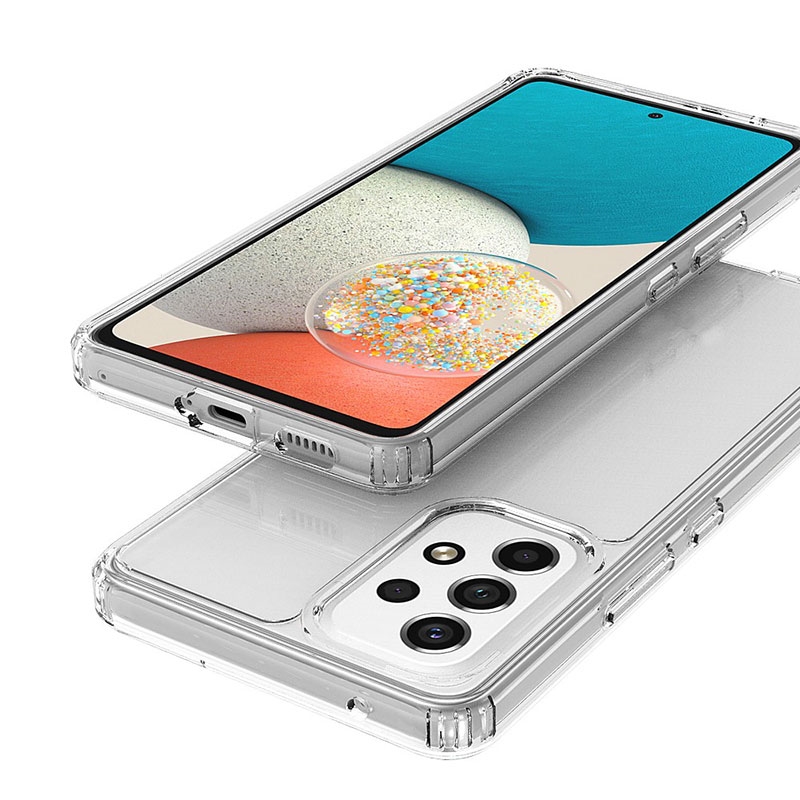 Dit accessoire maakt gebruik van een combinatie van acryl en TPU om je smartphone in ongerepte staat te houden. Ondertussen voorkomen de versterkte, schokabsorberende hoeken valschade, terwijl het transparante ontwerp het prachtige ontwerp van je Samsung Galaxy A53 5G laat zien.