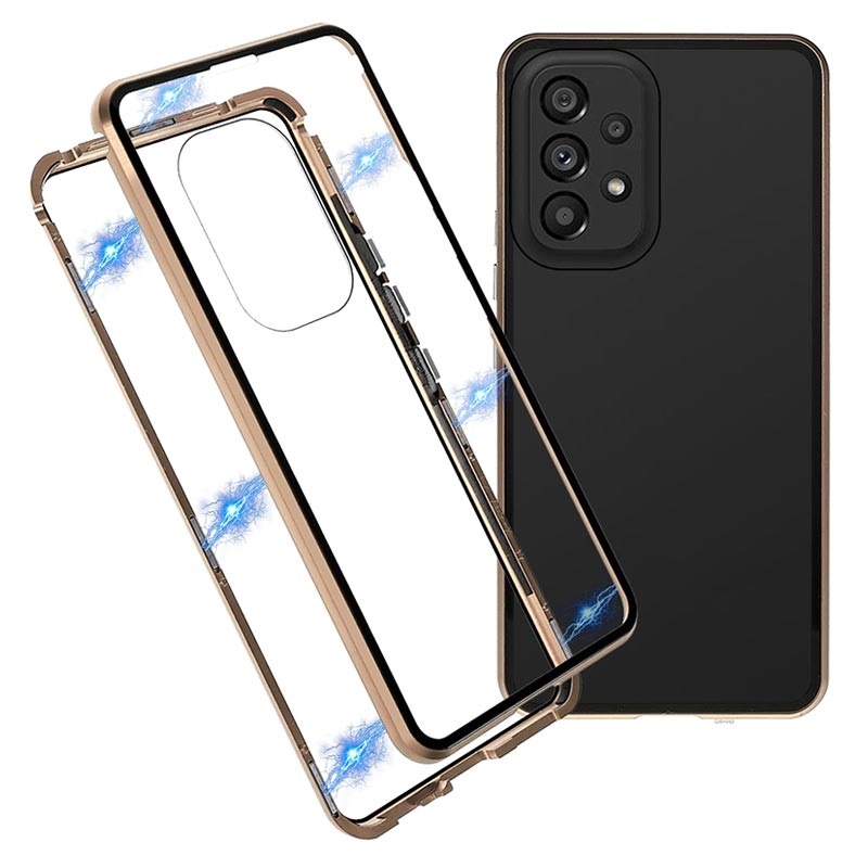 Deze uniek ontworpen hoes heeft een magnetisch metalen frame en helder gehard glas voor de voor- en achterkant om superieure bescherming te bieden voor uw Samsung Galaxy A53 5G. Hoewel het eersteklas bescherming voor je telefoon biedt, verbergt het magnetische hoesje met gehard glas de schoonheid van je Samsung Galaxy A53 5G niet.