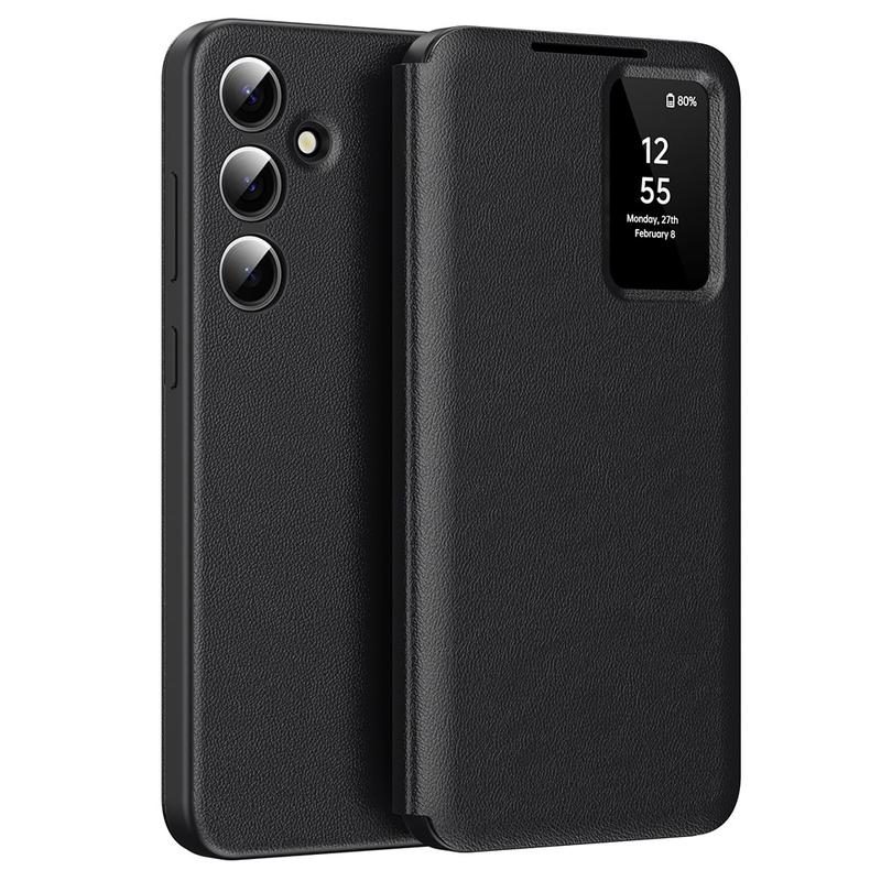 Samsung Galaxy A55 Smart Clear View Flip Hoesje met kaartsleuf - Zwart