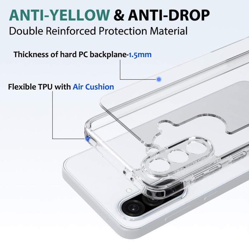 Dit accessoire maakt gebruik van een combinatie van acryl en TPU om je smartphone in ongerepte staat te houden. Ondertussen voorkomen de versterkte, schokabsorberende hoeken valschade, terwijl het transparante ontwerp het prachtige ontwerp van je Samsung Galaxy A56 laat zien.
