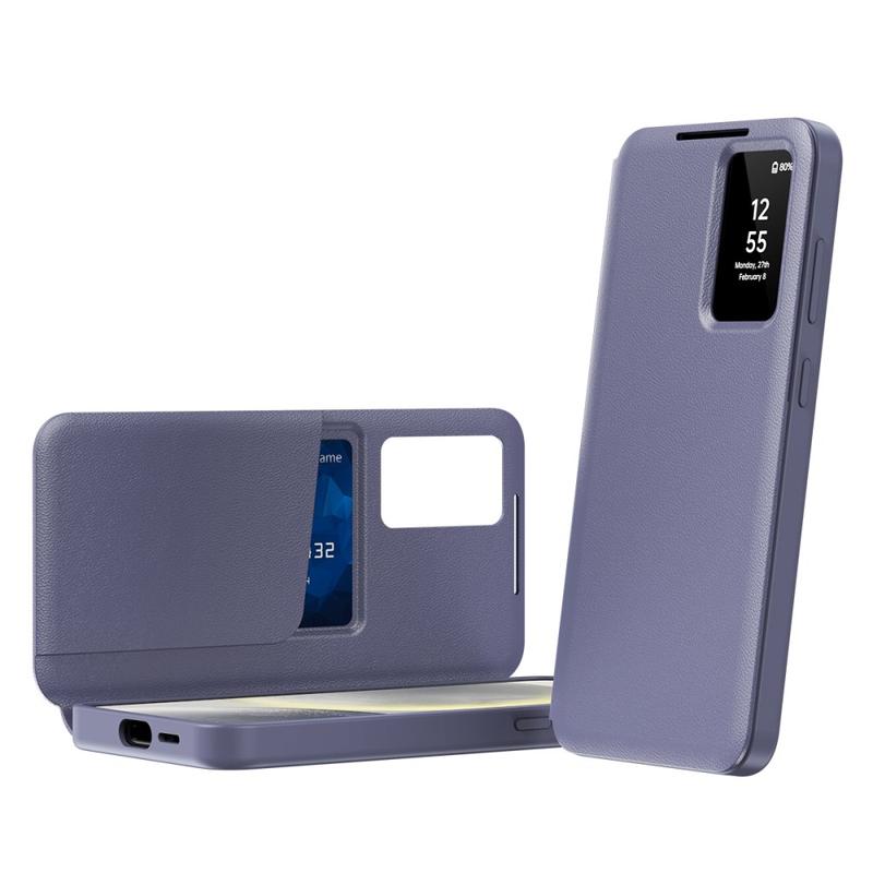 Samsung Galaxy A57 Smart Clear View Flip Hoesje met kaartsleuf - Grijs Paars