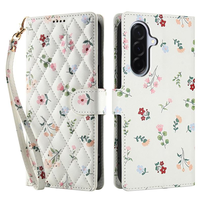 Ruitvormige Bloemen Portemonnee Hoesje voor Samsung Galaxy A57 - met riem en kaartsleuven