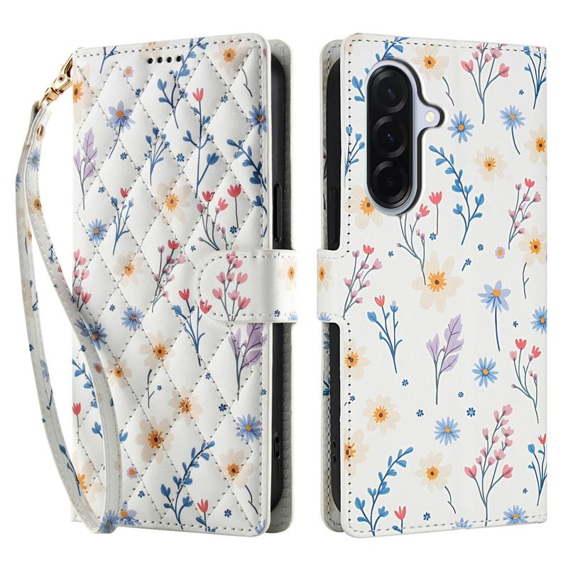 • Ruitvormige Bloemen Portemonnee Hoesje voor Samsung Galaxy A57 - met riem en kaartsleuven