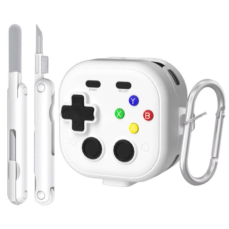Opladerhoesje in gamingcontroller-stijl met karabijnhaak en reinigingsgereedschap voor Samsung Galaxy Buds 4 en Galaxy Buds 4 Pro