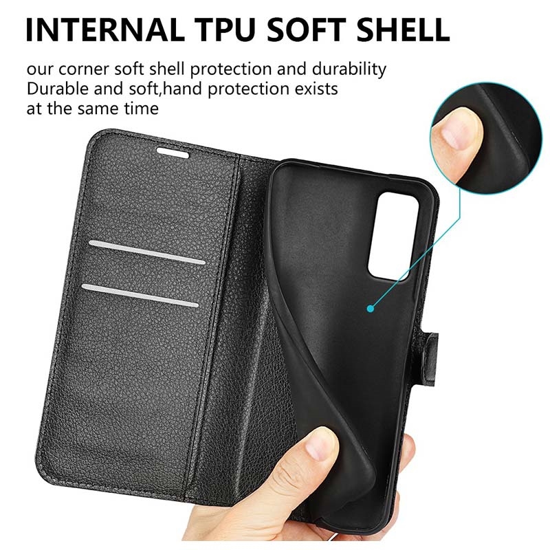 Deze premium portemonnee-hoes voor de Samsung Galaxy S20 5G verbetert de gebruikerservaring dankzij de ingebouwde opvouwbare achterkant en meerdere vakken. Gemaakt van hoogwaardig polyurethaan met een geïntegreerde schokbestendige TPU-cover.