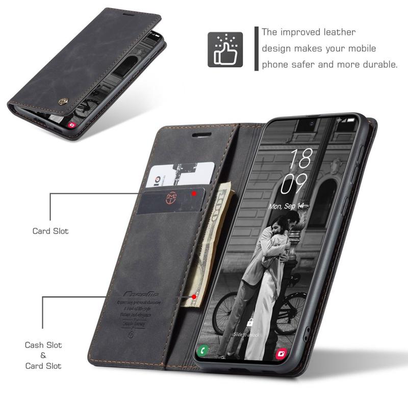 - Ingebouwde magneten houden de Caseme 013-serie portemonnee-etui gesloten