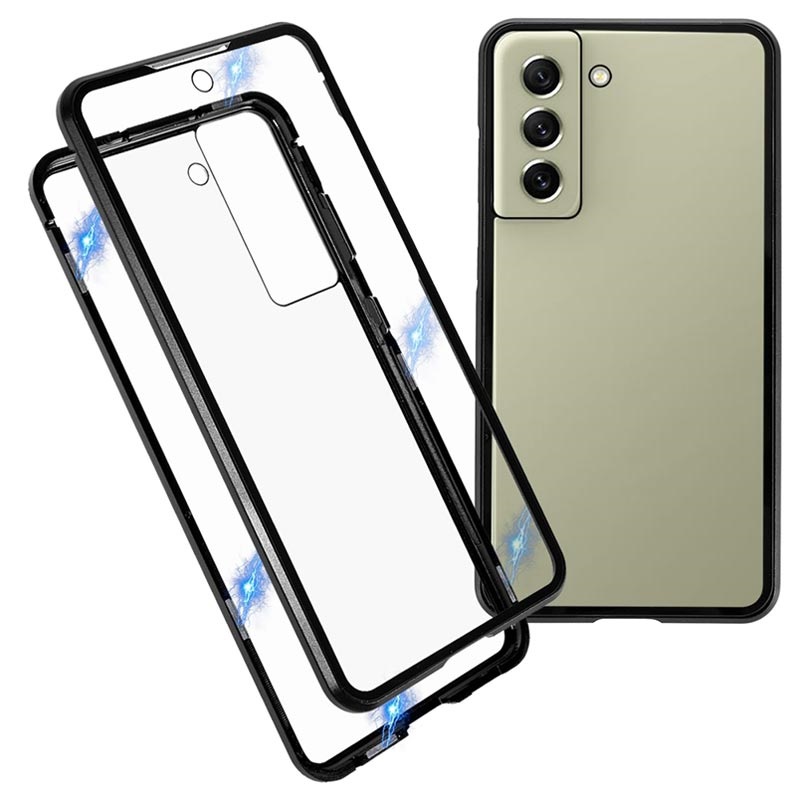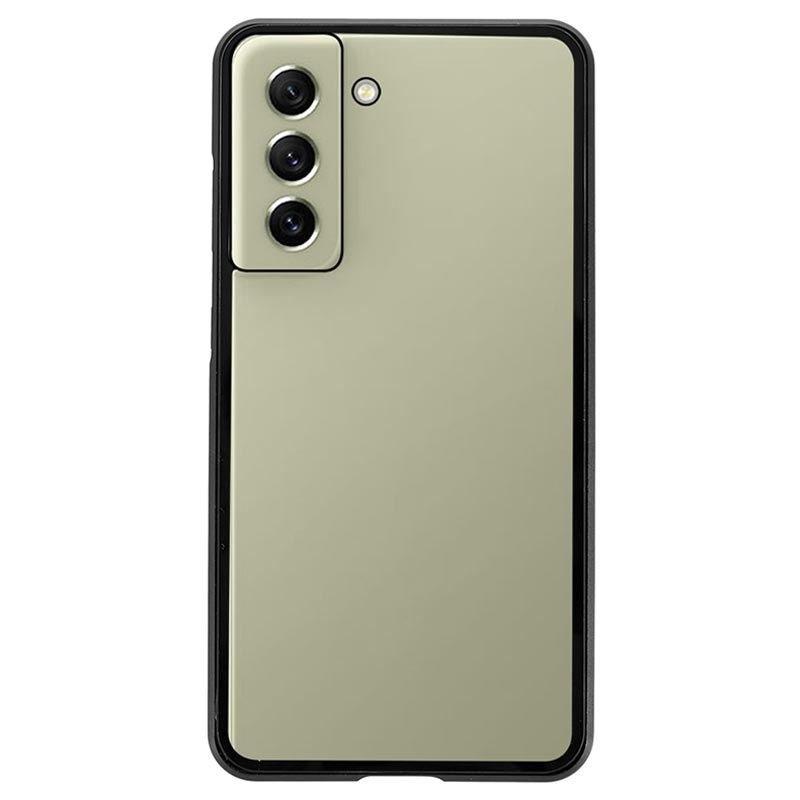- Samsung Galaxy S21 FE 5G hoesje met een metalen frame en gehard glas voor voor- en achterkant