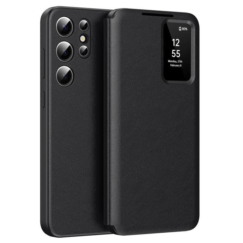 Upgrade je Samsung Galaxy S22 Ultra 5G met deze Premium Lederen Flip Cover, een combinatie van luxe, bescherming en functionaliteit in één elegant accessoire.