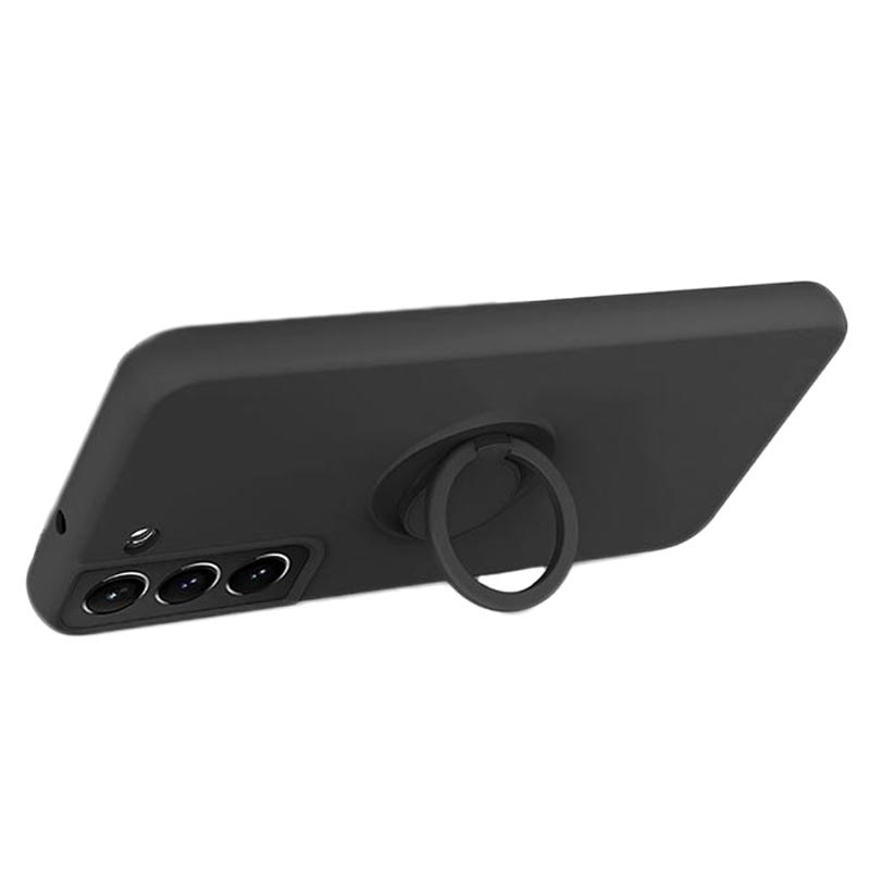 Samsung Galaxy S22 5G vloeibaar siliconen hoesje met ringhouder - zwart