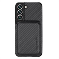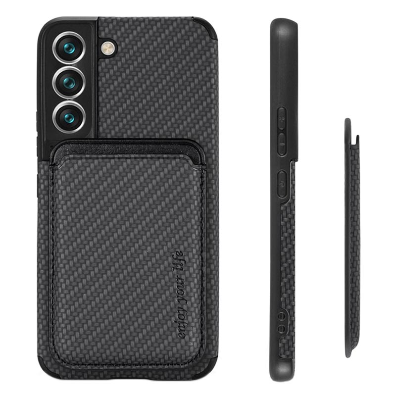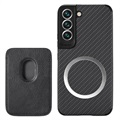 Samsung Galaxy S22 5G Magnetisch Hoesje met Kaarthouder - Koolstofvezel - Zwart