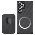 Samsung Galaxy S22 Ultra 5G Magnetisch Hoesje met Kaarthouder - Koolstofvezel
