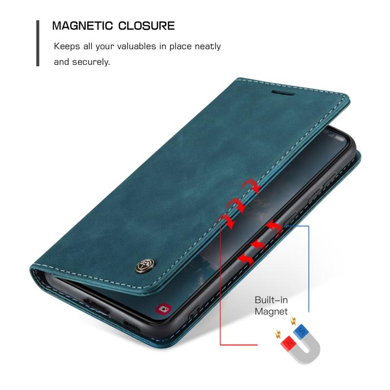 - Ingebouwde magneten houden de Caseme 013-serie portemonnee-etui gesloten