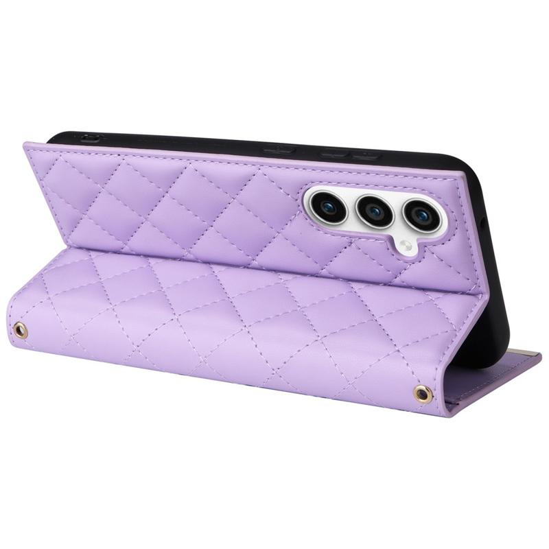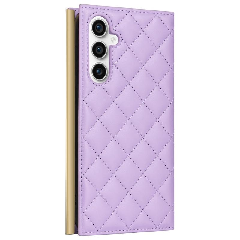 Bescherm je Samsung Galaxy S23 FE met deze luxe gewatteerde wallet case. Deze hoes is gemaakt van TPU-materiaal gecoat met PU leer, is krasbestendig en anti-vingerafdruk, zodat je telefoon er stijlvol en strak uit blijft zien. De stiksellijn vormt een ruitvormig rasterpatroon, waardoor de case een modieus en mooi tintje krijgt. De verhoogde rand van de camera en het scherm bieden effectieve bescherming tegen krassen, terwijl de nauwkeurige uitsparingen volledige toegang bieden tot alle knoppen, poorten en andere functies. Dankzij het portemonnee-ontwerp kunnen essentiële pasjes en contant geld gemakkelijk worden opgeborgen en de meegeleverde zuignappen kunnen worden gebruikt als steun voor handsfree gebruik. Met extra bescherming tegen krassen, stoten, vallen en dagelijkse schade wordt deze hoes ook geleverd met een schouderband en polsband voor extra gebruiksgemak.