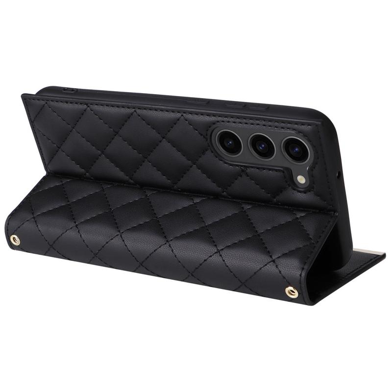 Bescherm je Samsung Galaxy S23 met deze luxe gewatteerde wallet case. Deze hoes is gemaakt van TPU-materiaal gecoat met PU leer, is krasbestendig en anti-vingerafdruk, zodat je telefoon er stijlvol en strak uit blijft zien. De stiksellijn vormt een ruitvormig rasterpatroon, waardoor de case een modieus en mooi tintje krijgt. De verhoogde rand van de camera en het scherm bieden effectieve bescherming tegen krassen, terwijl de nauwkeurige uitsparingen volledige toegang bieden tot alle knoppen, poorten en andere functies. Dankzij het portemonnee-ontwerp kunnen essentiële pasjes en contant geld gemakkelijk worden opgeborgen en de meegeleverde zuignappen kunnen worden gebruikt als steun voor handsfree gebruik. Met extra bescherming tegen krassen, stoten, vallen en dagelijkse schade wordt deze hoes ook geleverd met een schouderband en polsband voor extra gebruiksgemak.